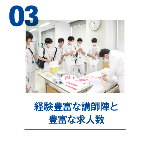 臨床実習など、学校では学ぶ事のできない病院における技術、知識を修得します。また、国家試験対策も同時に学習していきます。