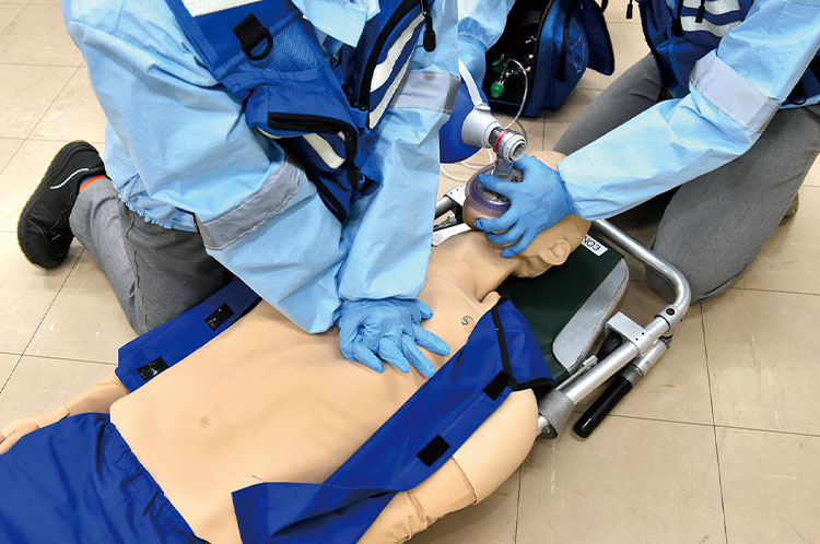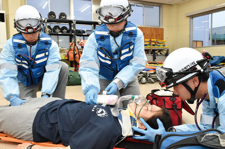 救急救命士は、ケガや病気で苦しむ人のもとへ駆けつけ、医師の指示のもと高度な救急救命処置を行い、病院へ搬送する任務を担っています。